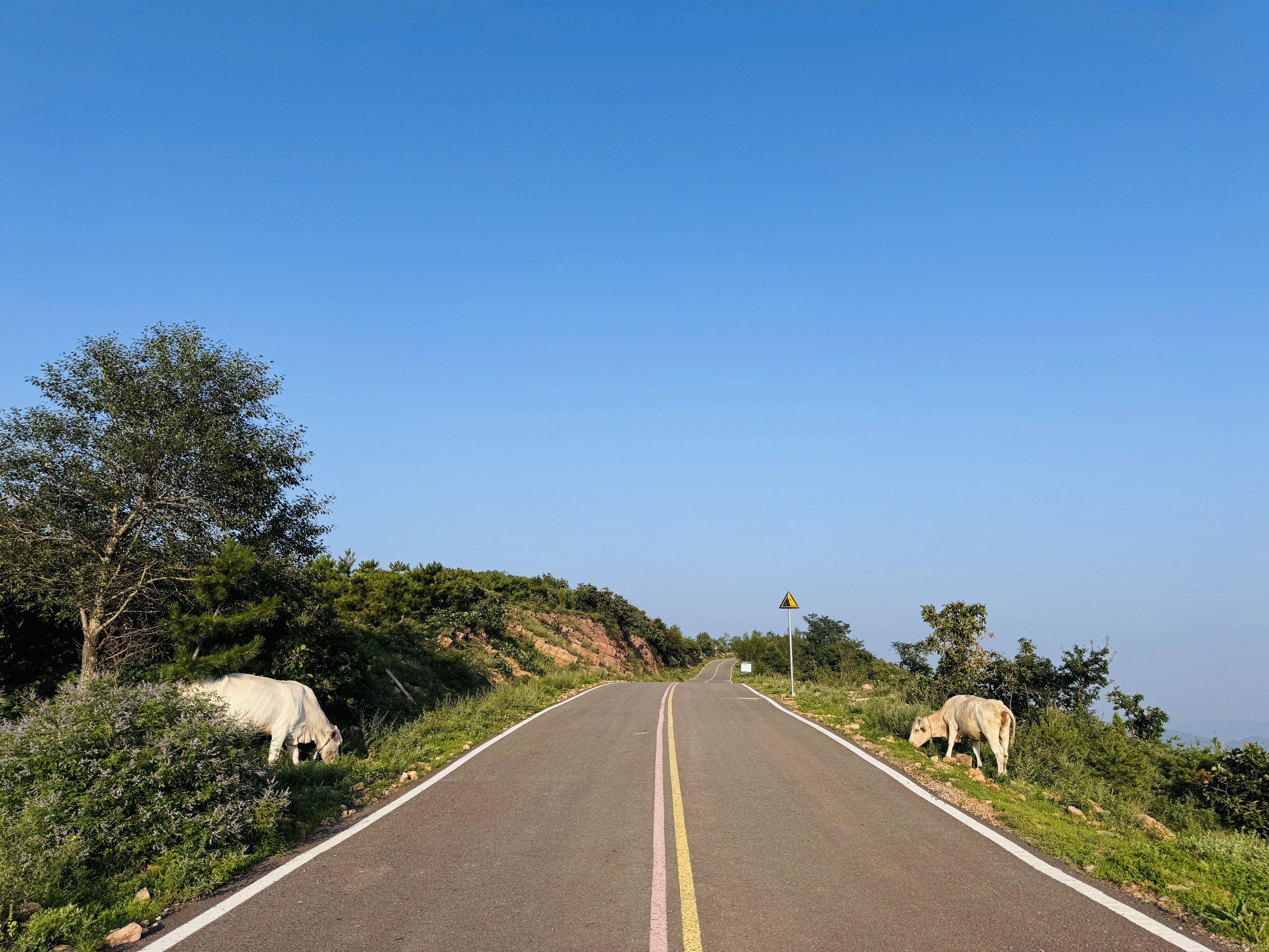 ![]() 開車前往云門寺可走Y022線,這條盤山公路長約7公里,起點位于G241橫嶺頂,向西北方向可直達韶山森林公園。公路線形設(shè)計很好,蜿蜒但不崎嶇,雙車道瀝青路面,路邊的護欄、急彎處的廣角鏡、標線標志標牌一應(yīng)俱全。山里的空氣很清新,放下車窗,山風(fēng)裹著草木的清香撲面而來,猶如世外桃源般靜謐。牛兒在路邊悠閑的吃草,偶爾能聽到幾聲鳥叫,更顯“鳥鳴山更幽”的意境。忽然間,云霧隨風(fēng)繚繞,飄渺如畫仙氣十足。